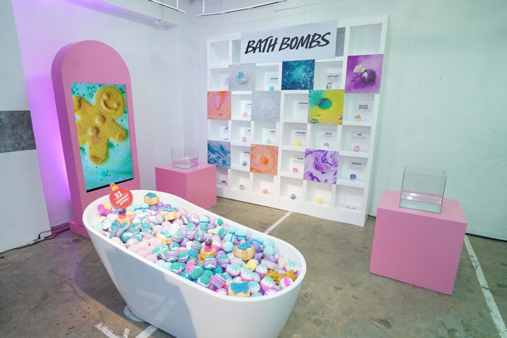 The Bath Bomb Museum, meanwhile, was a sensory lover’s dream! A carefully curated collection of the bath bombs released over 30 years, on show for Lush fans to marvel at. Each bath bomb offered a unique blend of colors, textures, and scents, making it a festive, fabulous display for all to enjoy. Fun fact: co-founder and product inventor Mo Constantine invented the bath bomb in her garden shed back in 1989, years before Lush opened its very first store.