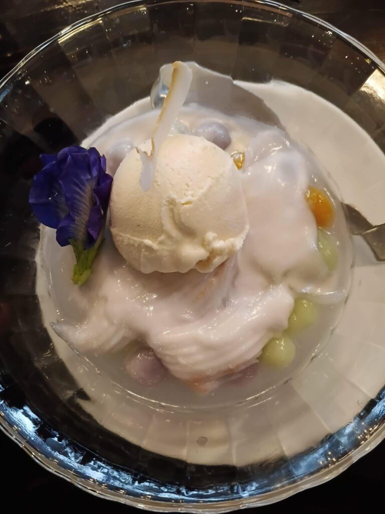 Rice balls with young coconut and coconut ice cream—an indulgent, irresistible finish to an unforgettable meal.