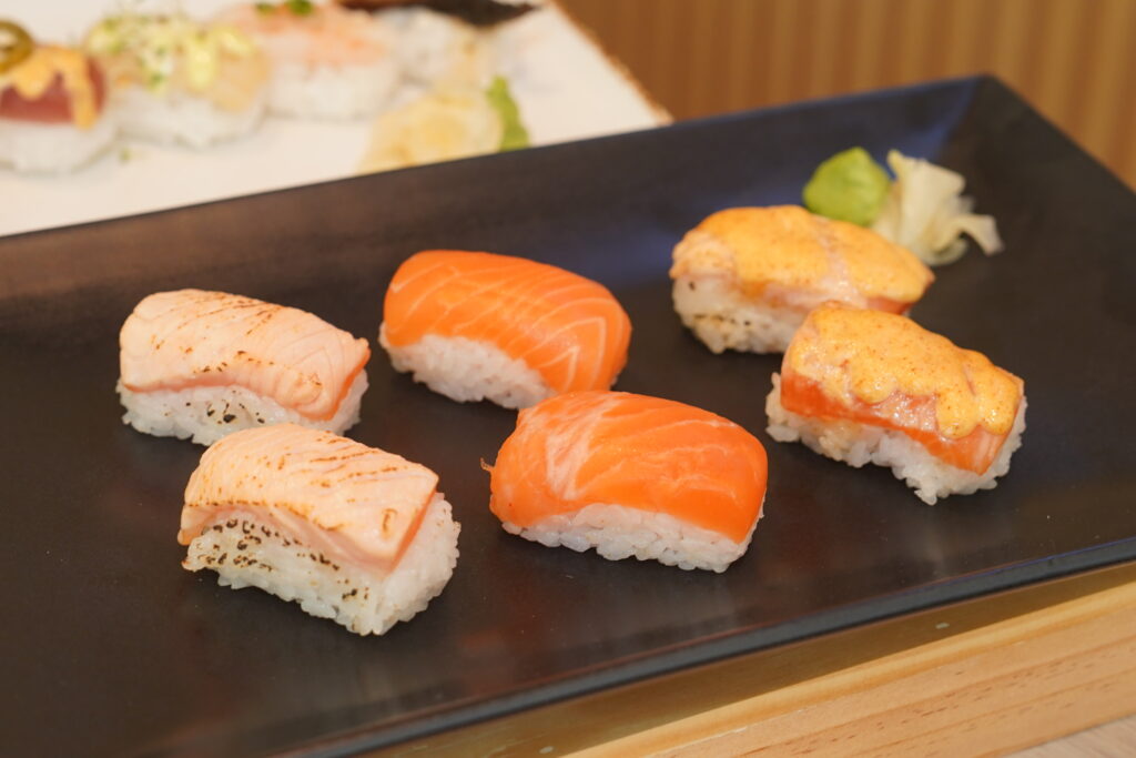 I so loved the Tres Leches Matcha, a dreamy smoothie that blends earthy matcha with the velvety cream of the well-loved Spanish dessert. The Aburi Hotate Roll was likewise a highlight. Think: succulent lightly seared scallops with a subtle caramel glaze that hits smoky and fresh notes in every bite. The Salmon Oshizushi—three irresistible layers of pressed salmon: raw, seared, and seared with a creamy mayo finish—also proved irresistible. Ootoya’s signature Tofu Salad was unexpectedly comforting, with silky tofu resting on crisp greens swathed in sweet-and-tangy sesame dressing—light, refreshing, and super satisfying! And yes, I had TWO desserts (don’t judge). First up, the Shiratama Matcha Zenzai, a mix of matcha ice cream, chewy rice cake balls, silky jelly, sweet azuki beans, and drizzles of kuromitsu, each spoonful a scrumptious swirl of textures and tastes. Quick on its heels (and before guilt could overcome me), the very matcha-forward Matcha Parfait, which layered creamy matcha ice cream with fresh mango, mixed berries, cream, and kuromitsu, offering a playful, fruity contrast to the rich green tea flavor. Full disclosure: you have to be a matcha lover (as I am) to fully appreciate both.