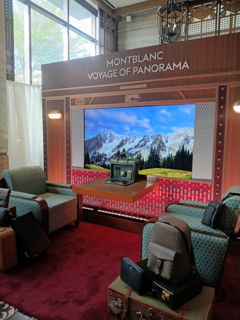 The event was a thoroughly enjoyable immersive experience that brought to life Montblanc’s vision of the transformative power of writing. We were transported to the Montblanc Observatory High-Mountain Library, a fictional (yet very much believable) destination in Wes Anderson’s world, set on board a staged train car called the Montblanc Voyage of Panorama. If this reminds you of The Darjeeling Limited, you’re not wrong. In fact, it’s that same blend of quirky, literal, metaphorical, and poetic journeys that make this experience so captivating. Think of it as a moving meditation—a moment of introspection, imagination, and, of course, writing.
