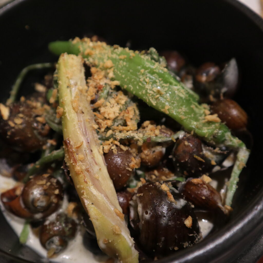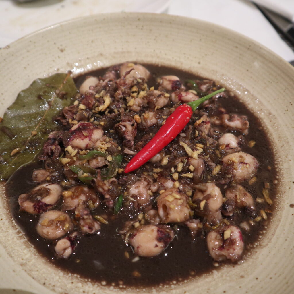 Garlicky Squid Adobo: Ok, I’m not the biggest squid person, but this dish? I will admit, I had seconds. Tender baby squid sautéed with fragrant garlic and green chili, then drenched in soy sauce for a deep, savory umami punch. A touch of squid ink adds an extra layer of briny richness, giving the sauce a dark, luxurious, super satisfying depth. Seafood lovers, this one’s for you.
