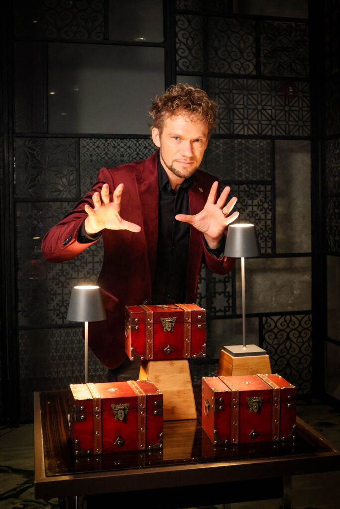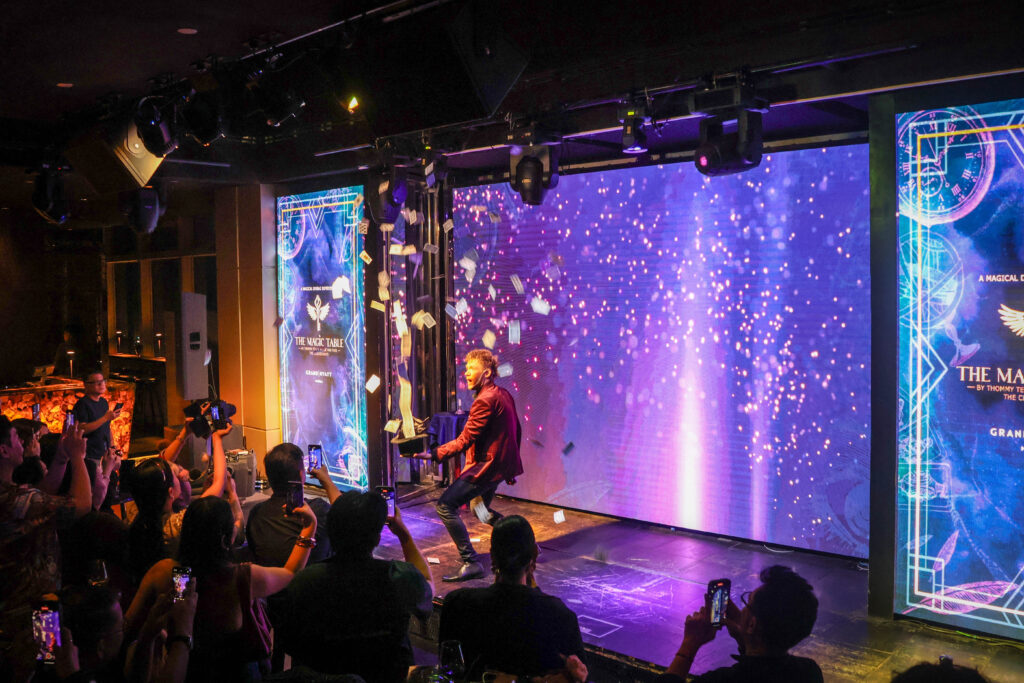 Thommy flew in solo for the preview (Amélie stayed back with their baby—mentalists, they’re people too) and gave us a tightly executed taste of what’s to come: a short but scintillating mentalism show, sneaky-smart canapés, and an exclusive peek at the full-blown set-up for the upcoming five-course mind-fry of a meal.