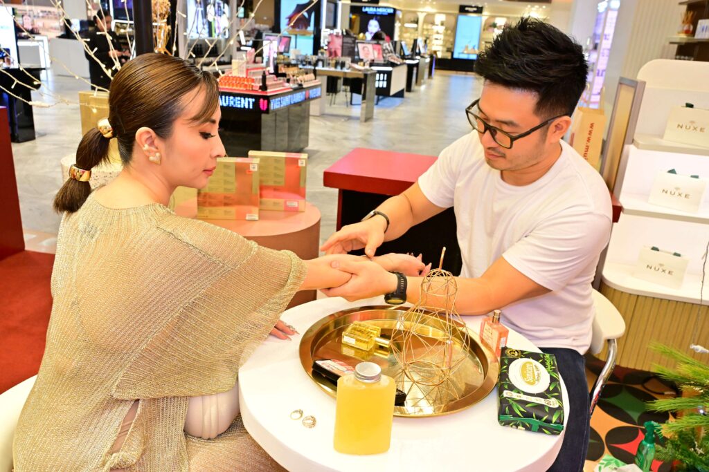Held on November 14, 2025 at Rustan’s Makati’s Beauty Courtyard, Nuxe’s intimate in-store event was more than just a product showcase; it was a sensory experience that blended science, nature, and wellness. Osteopath Filb Tan? He blew my mind. Without me saying a word, he was able to pinpoint old, underlying health conditions—just by massaging my hands and reading their pathways. The guy’s basically a human body map, with a keen sense of compassion and sensitivity. And then, his wife, gua sha guru Trish Tan, showed us how self-care goes way beyond surface-level skincare. It’s about feeling good in your own body.